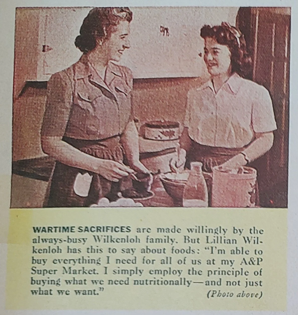 Americans on the Home Front worked at everything from knitting to salvaging war materials to producing tanks, planes, dried eggs and chocolate. All while keeping up morale. And in the midst of it all, dealing with inflation. In the A&P advertisement, Mrs. Wilkenloh said, “I meet my foot budget in spite of rising costs.” And in spite of food shortages. The ad explains her strategy: